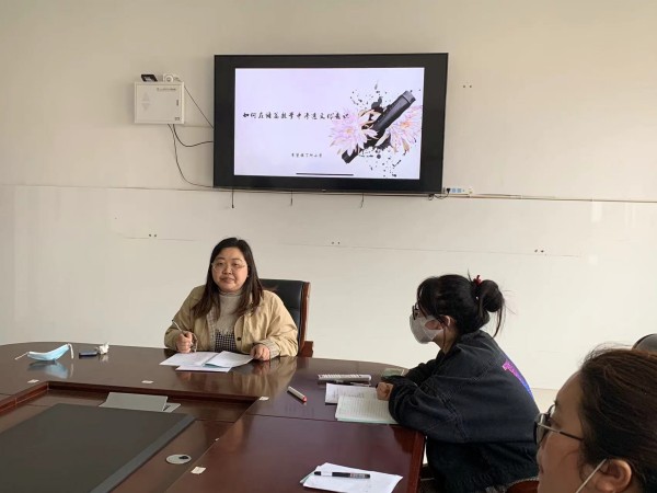 接着,英语老师们相聚一堂,在丁所小学会议室进行了评课。在这里,智慧的火花在碰撞,思维的海洋在激荡,各位老师们积极讨论,各抒己见,既对两节课作出高度评价,又联系本次主题提出了中肯的建议。
